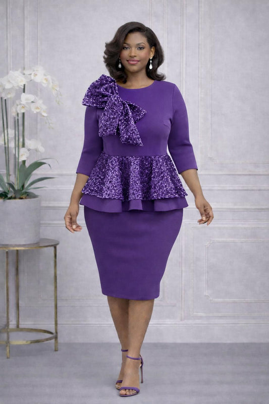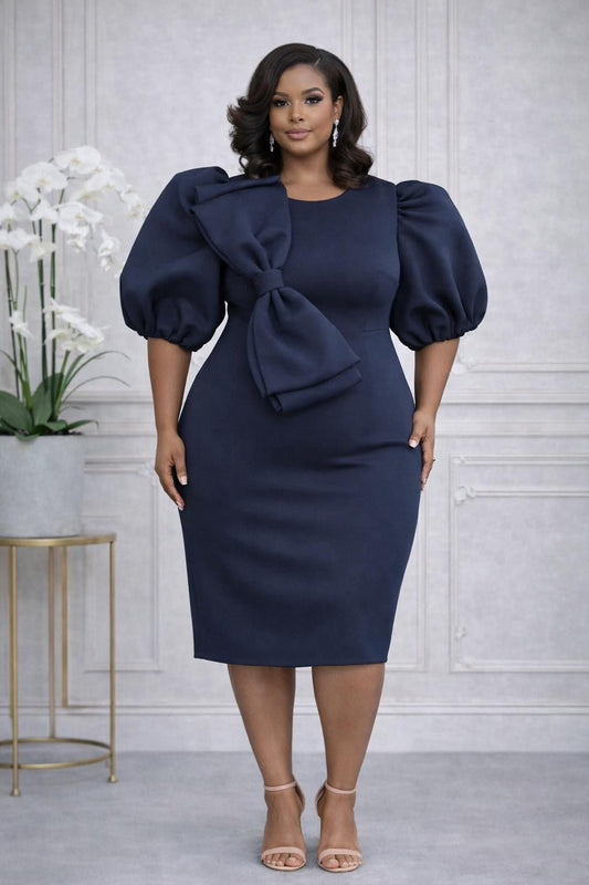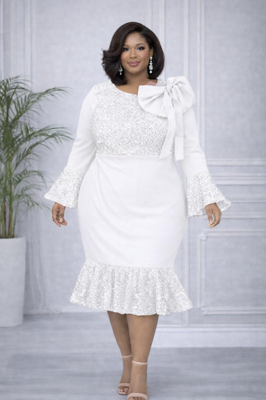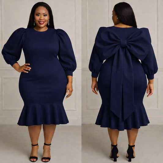 2904 Plus Size Sweetheart Neck Short Sleeves Mermaid Midi Dress