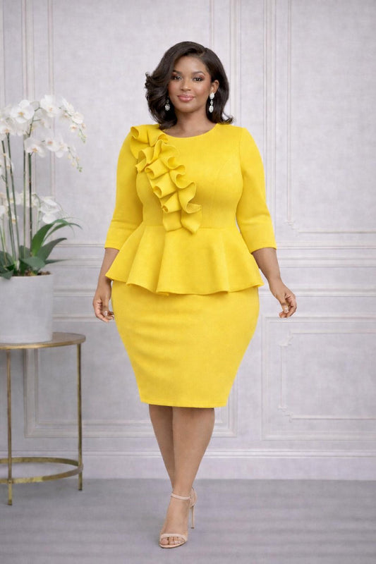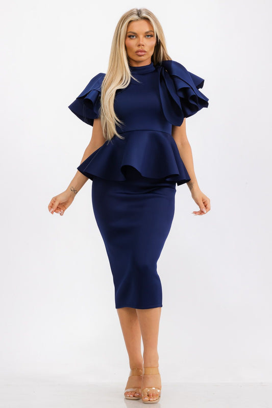 2977 Plus double Ruffled Sleeves Pleated Flare Midi