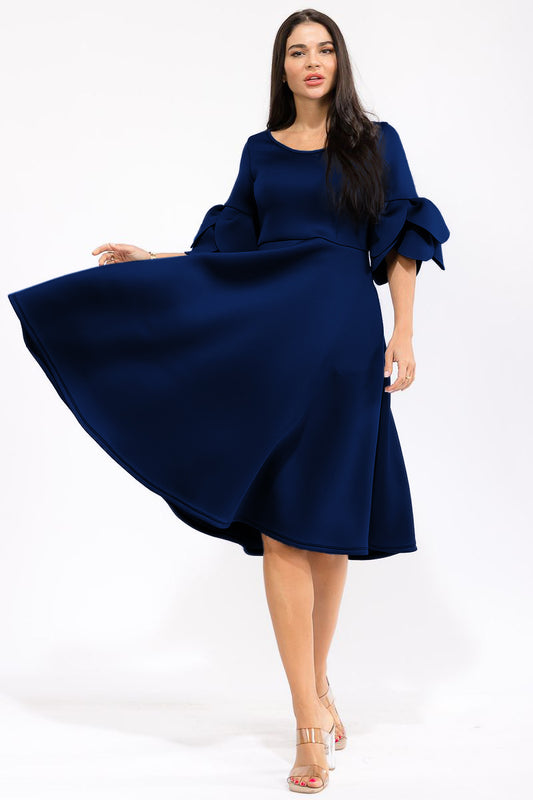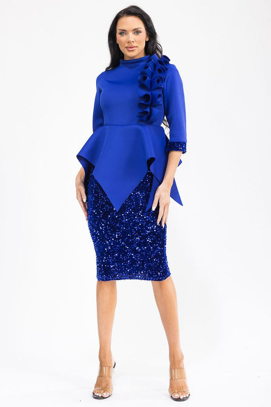 2954 Plus Size Boukleh Long Sleeves Blouse and Midi Skirt 2pcs set