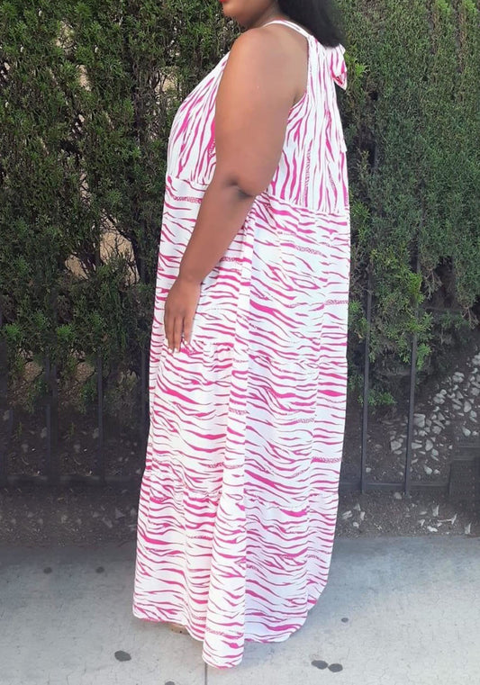 2687ST Plus Size Multi Stripe Halter Neck Flare Maxi Dress