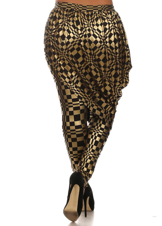 Plus Size Women Gold Metallic Hi-Waist Legging layer drape Skirts