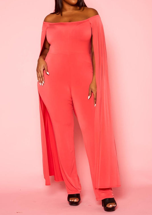 Plus Size Women Off Shoulder Cape Sleeve Jumpsuit