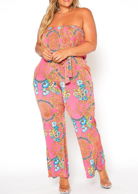 Plus Size Women Multi Print Tube Jumpsuit
