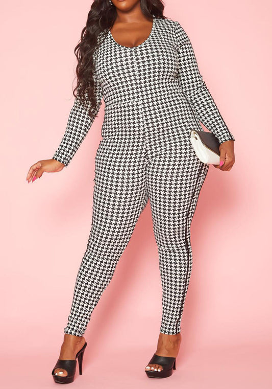 Plus Size Women Hound tooth Plaid Jumpsuit