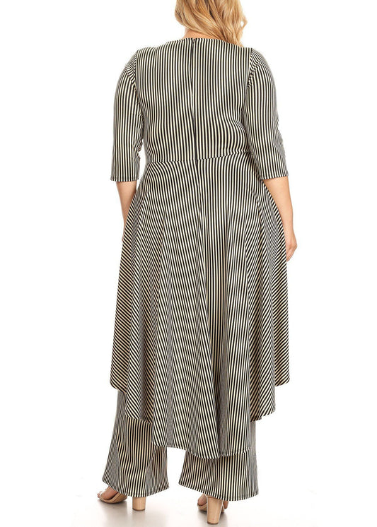 2549 Plus Size Striped Hi- Low Top and Wide Leg Pants Jumpsuits (Copy)