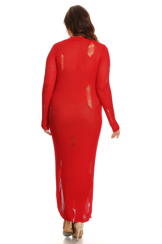 LSDB79 Plus Size Choker Neck Ripped Knit Bodycon Dress