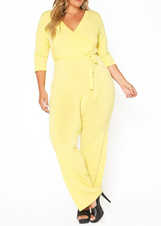Plus Size 3/4 Sleeves Fancy knit Waist tie Jumpsuit