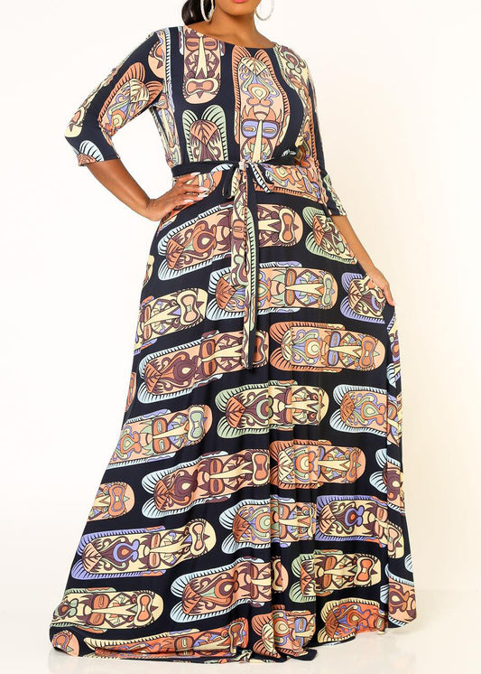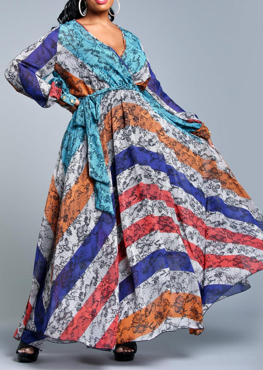 1796AF PLUS Women Unique Printed Flare Maxi Dress
