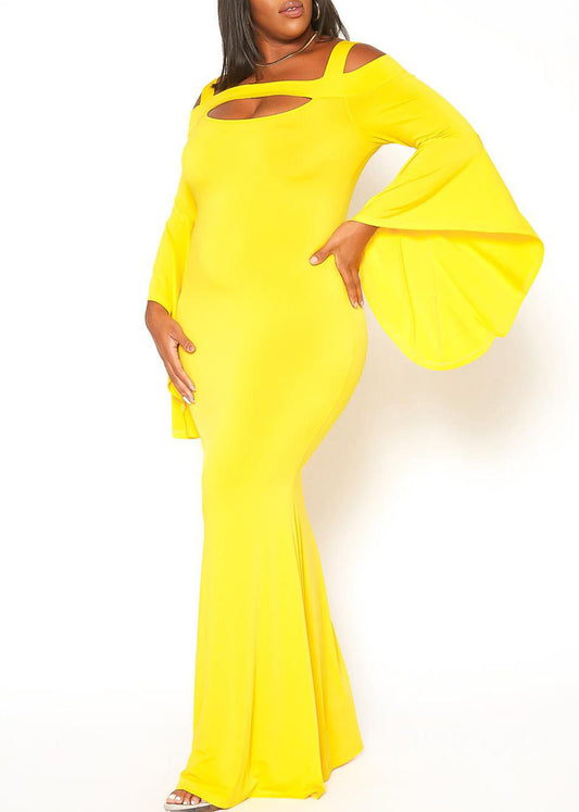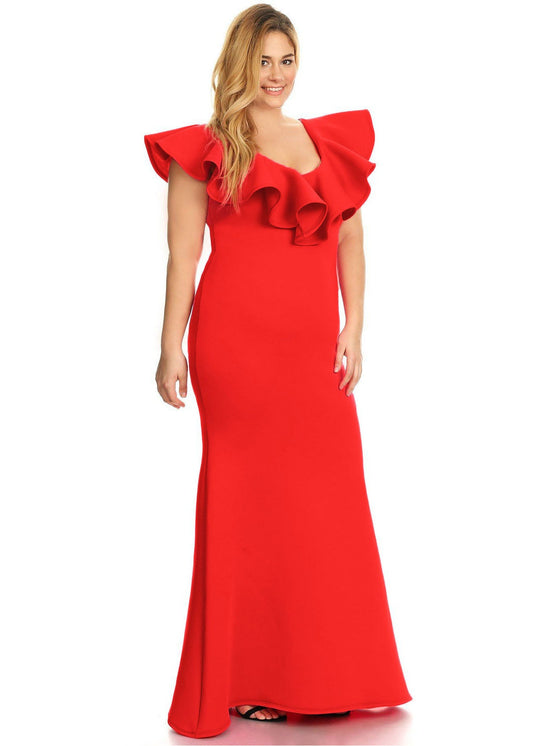 Plus Size Women Ruffle Hem V-neck Mermaid Maxi Dress