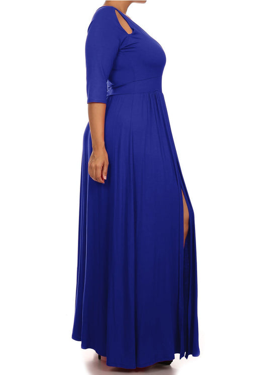 Plus Size Women Full Length V-Neck Cutouts Silted Maxi Dress