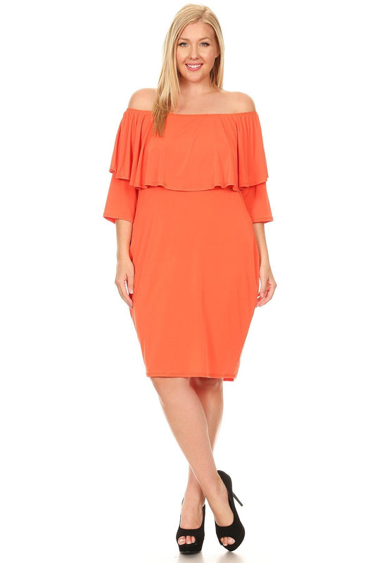 Plus Size Off Shoulder Ruffle Knee Bodycon Dress