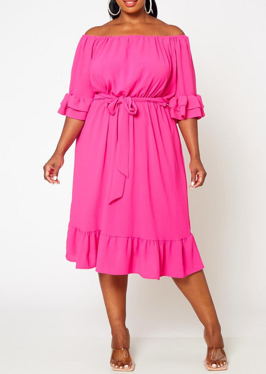 2831 Plus Size Off the Shoulder Fit and Flare Dress