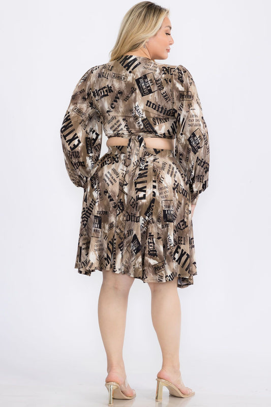 3001-SET Plus Size Ruffle sleeves Ruff Hem Skirts Set With Belt