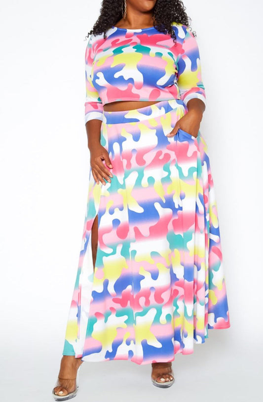 Plus Size Handkerchief Crop Top & Maxi Skirt Set
