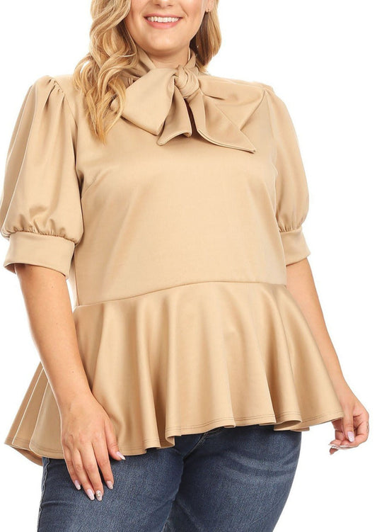 1911 Plus Size 4X5X6X Women Puff Shoulder Sleeve Peplum Blouse