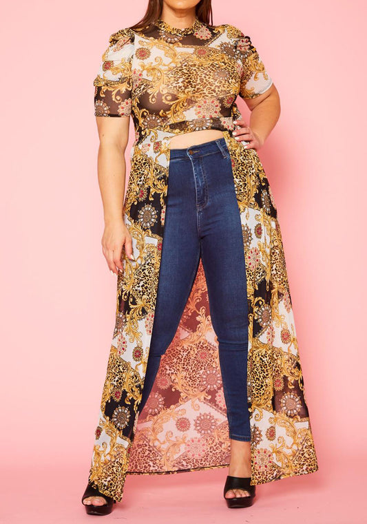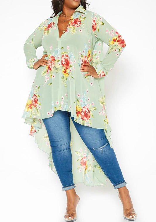1874 Viva CURVY Plus Size Floral Print High Low Collar Cardigan