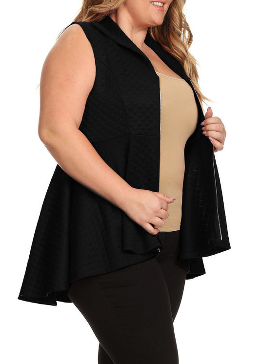 Plus Size Hi-lo hem and A Front Zipper Closure Top