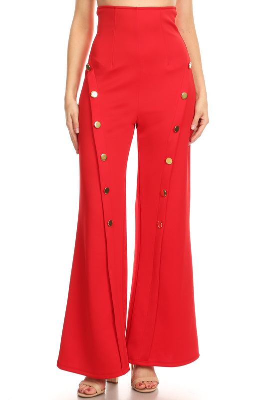 2183 Women Chic Solid Hi Waist Layer Wide Leg Button Front detail