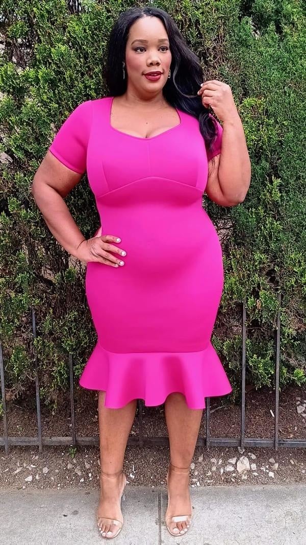 Expertly crafted in the USA, this plus size midi dress features a sweetheart neckline, short sleeves, and a flattering mermaid silhouette. Perfect for any occasion, this dress will enhance your curves and make you feel confident and stylish.