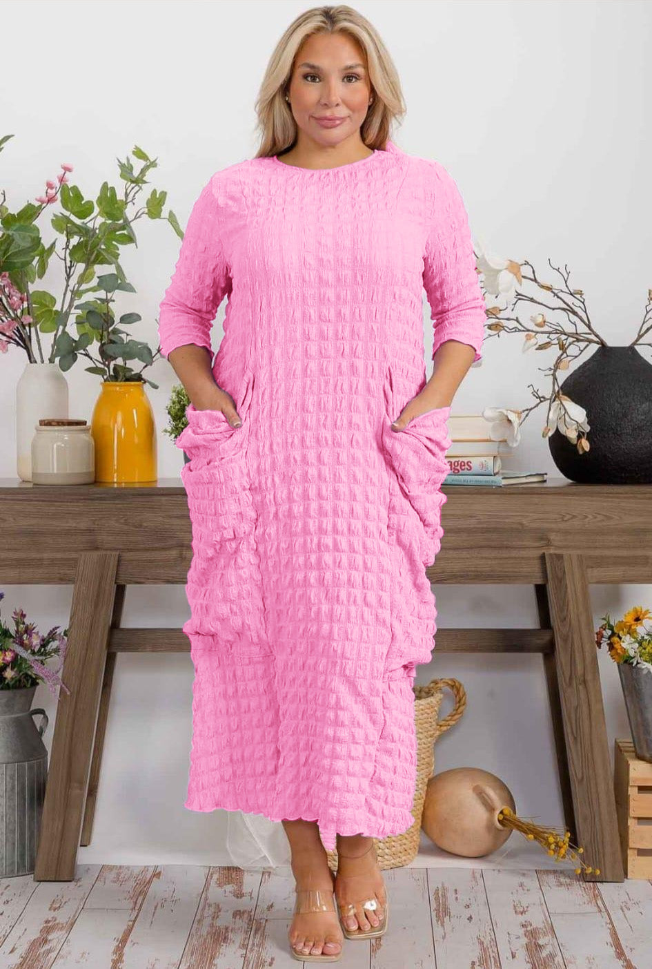 TRIPLE POCKET RELAX FIT POPCORN DRESS