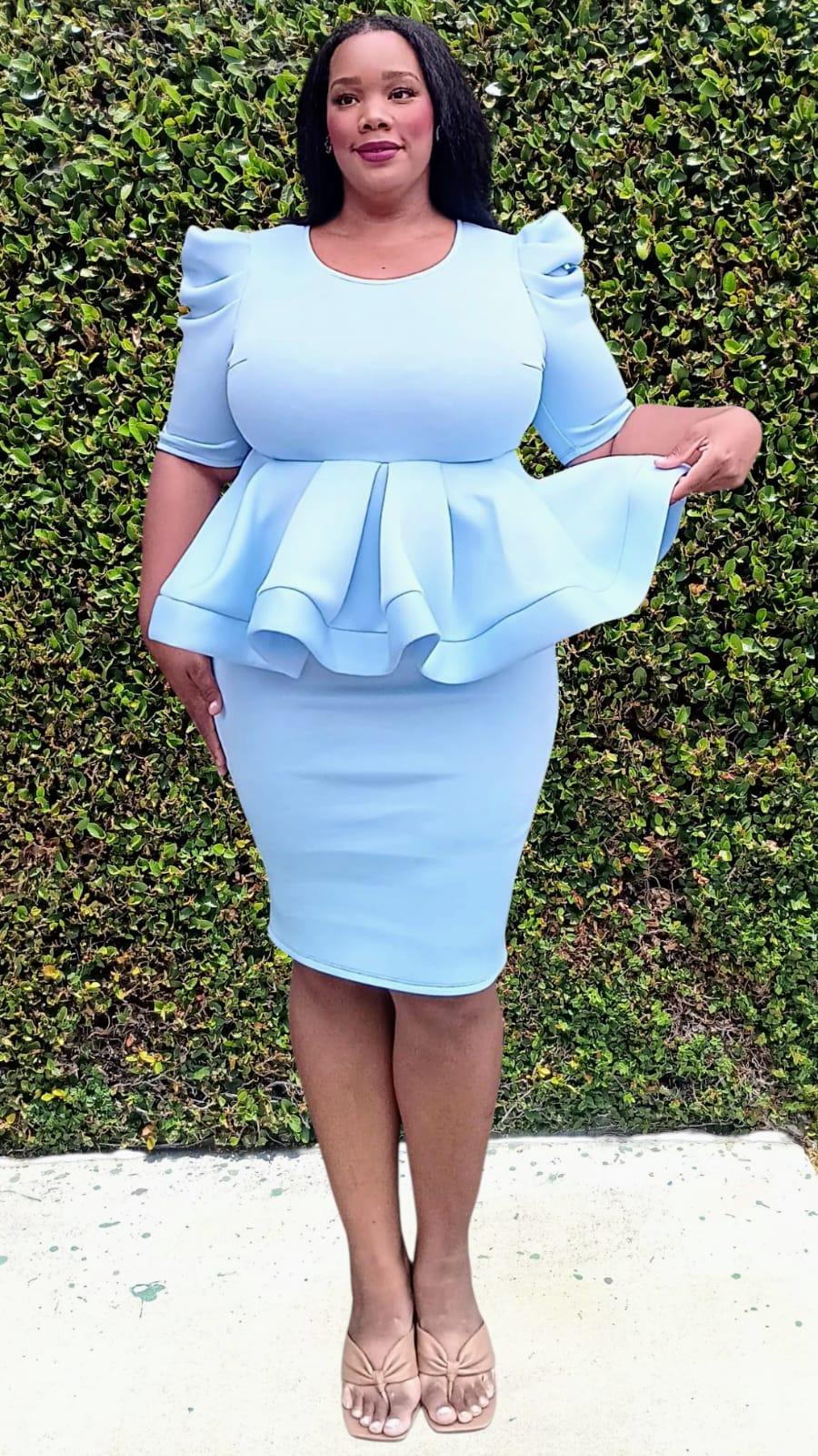 SUPER TECHNO PEBLUM HORSE HAIR TRIM PLUS SIZE CLASSY DRESS
