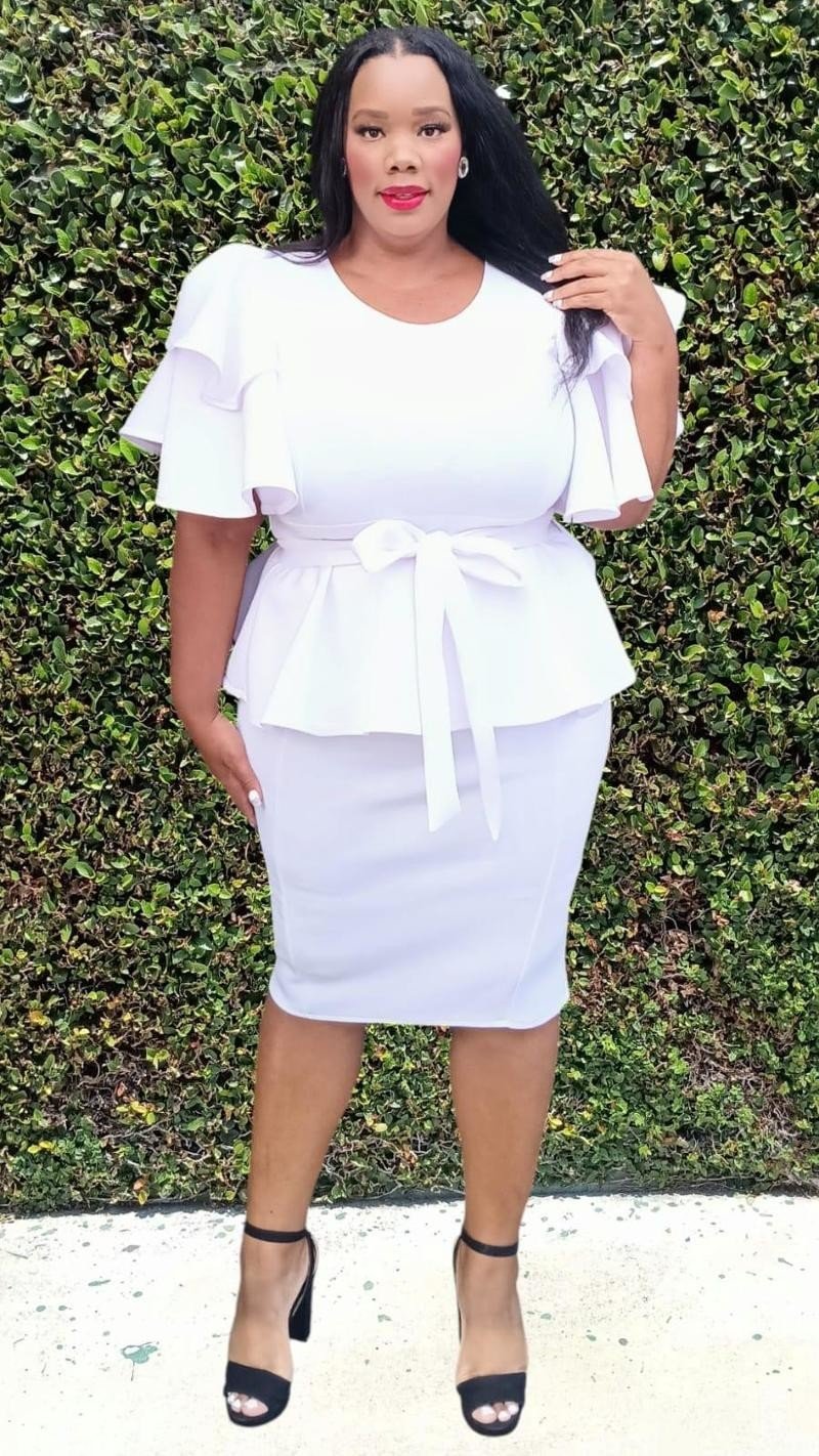 This Plus Size Ruffle sleeves Ruff Hem Skirts Set With Belt is perfect for adding a touch of elegance and style to your wardrobe. The ruffle sleeves and hem add a unique and feminine touch, while the included belt helps to accentuate your figure. With its comfortable fit and stylish design, this set is a must-have for any fashion-forward indiviDUAL