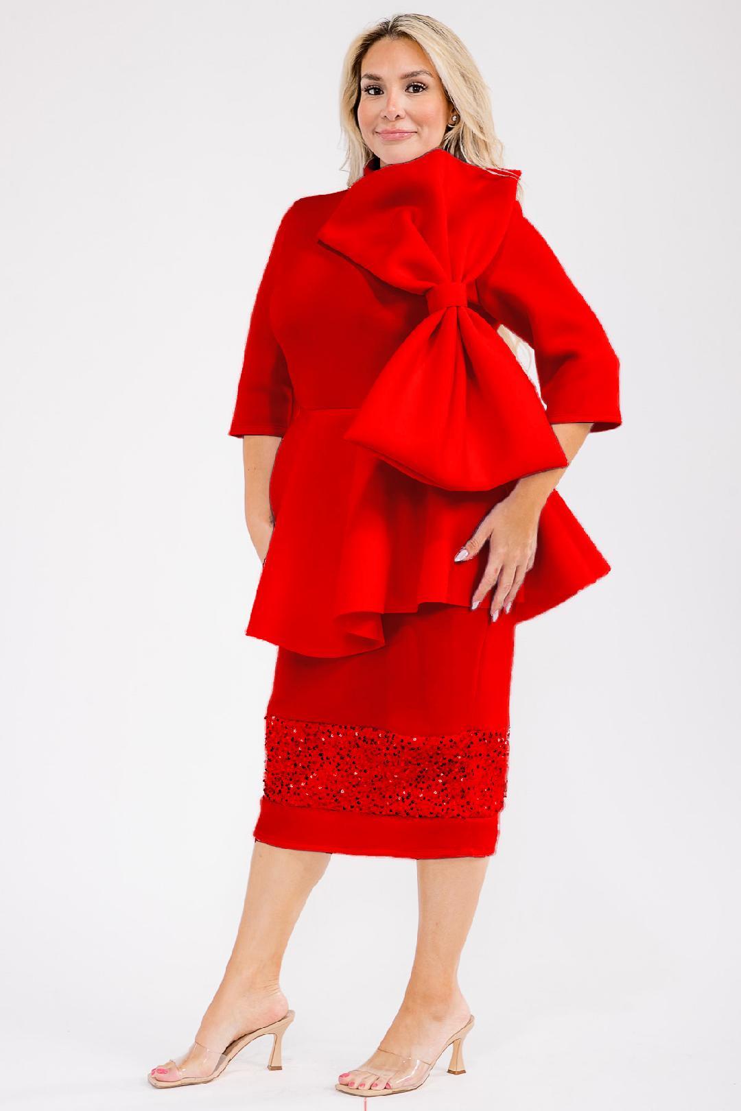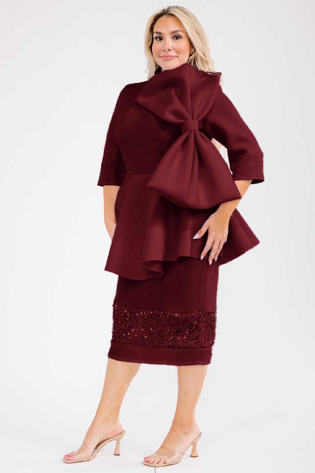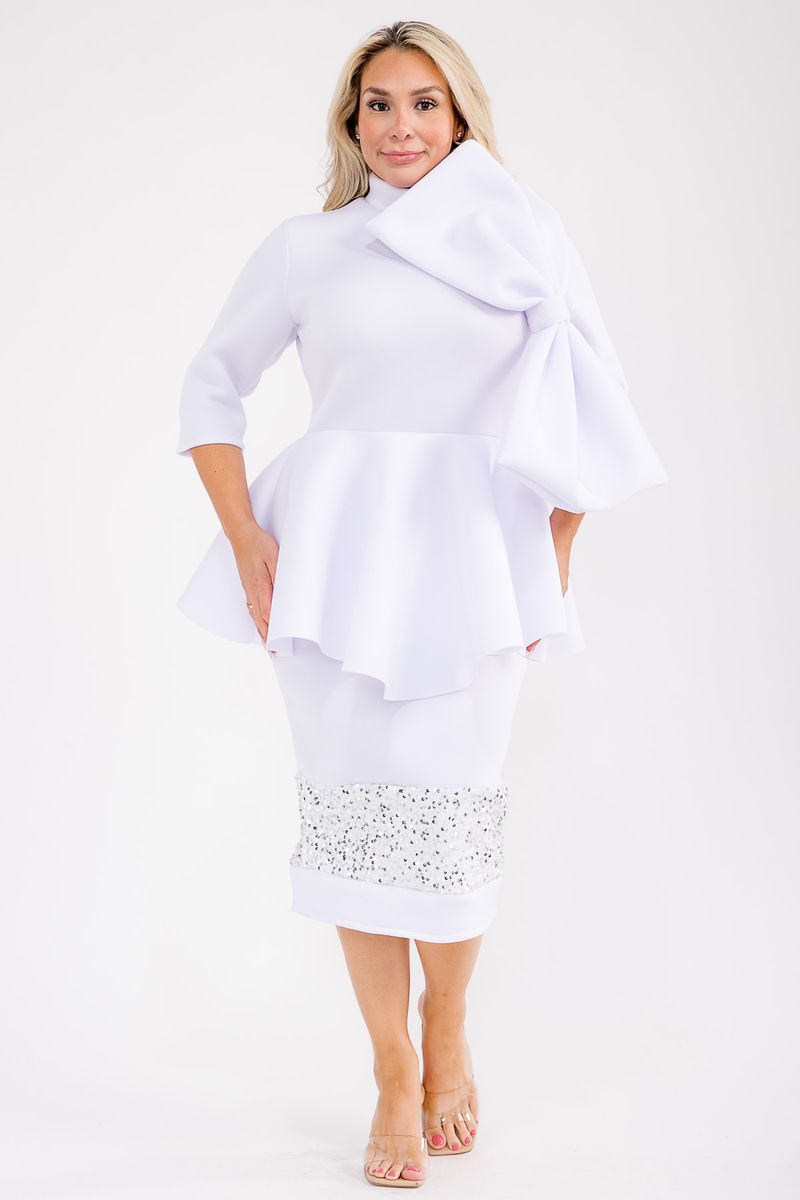 SUPER TECHNO SEQUENCE BOW SHOULDER COMBO DRESS PLUS SIZE